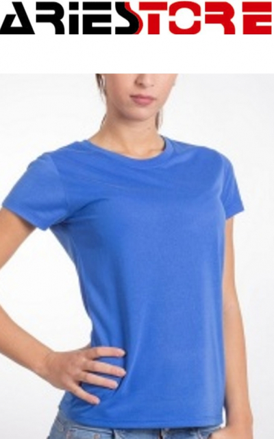 Shirt Performance Tee Lady. Prezzo 4,00 iva compresa. Tessuto 100% poliestere testurizzato. Effetto traspirante per il controllo dell'umidità, collo ad asciugatura rapida, leggera e confortevole. 140 g / m². Disponibile dalla S alla XL. Minimo 20 pezzi