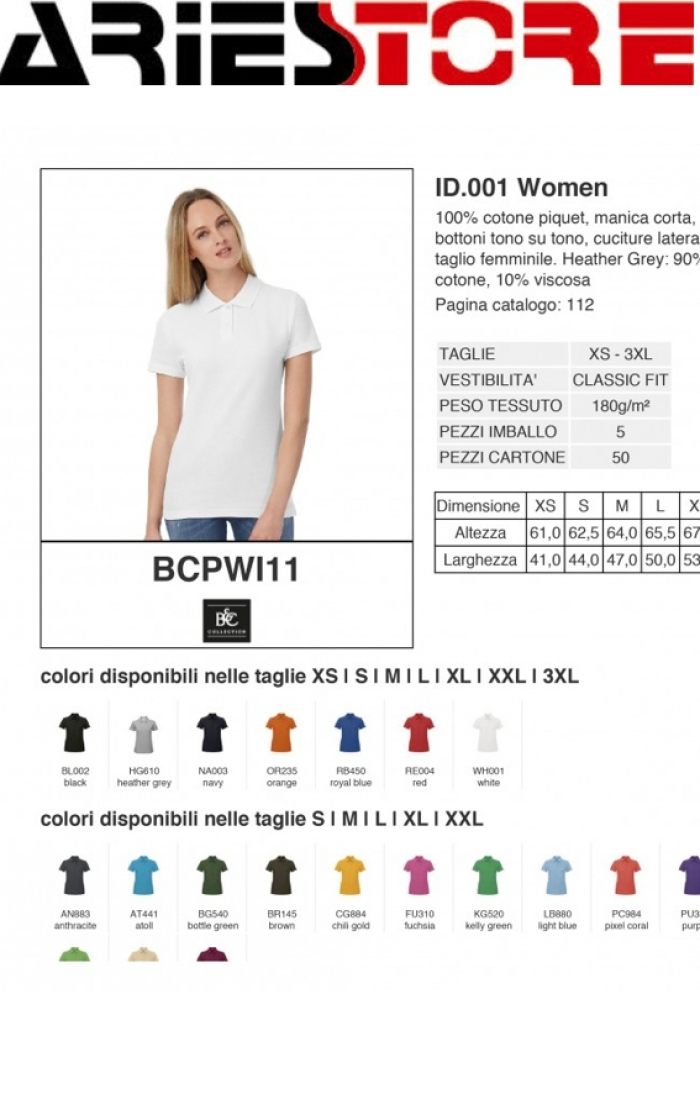 Polo Classic Woman. Prezzo 7,00 iva compresa. Minimo 30 pezzi. 180 g/m² 100% cotone ring-spun pre-ristretto colletto a costine