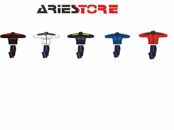Tuta Delta. Prezzo 20,00 iva compresa. Gara - rappresentanza, Giacca bicolore con zip, profili e inserti a contrasto, panta con coulisse, tashe e zip. Prezzo 22,20 iva compresa. Tessuto Poliestere Piquè