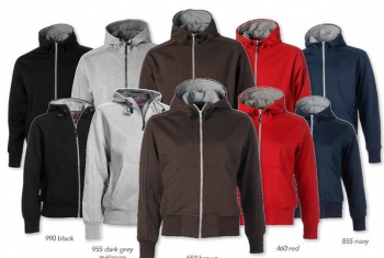 Hood with rib at bottom hem and sleeves and elastic drawstring at hood. Pipings in body material on sleeves and contrast lining inside hood