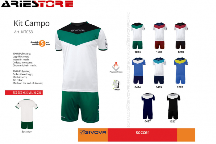 Givova Kit Campo KITC53. Ability to enter numbers and prints. TO KNOW THE PRICES REQUEST A QUOTE.