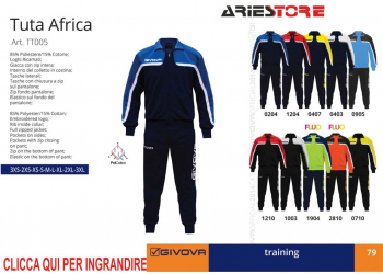 Tuta Africa Givova TT005. Prezzo iva inclusa. Disponibile dalla 3XS alla 3XL in 10 colori.