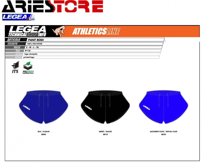 Rodi Panta P118 Legea. Prezzo 7,00 iva compresa. Disponibile dalla S alla XL in 8 colori. Minimo 20 pezzi