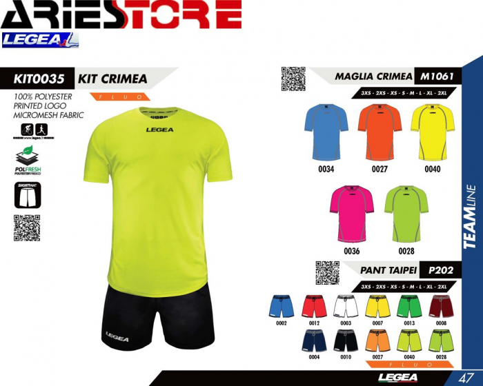 Crimea KIT0035 flou Legea. Preis 11,00 netto zzgl. MwSt. Verfügbar von 3XS eine 2XL in 5 Farben. Sie können wählen, entweder die Farbe des Trikots ist die Farbe der Hose