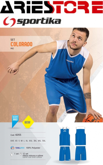 Colorado Set Sportika 6055. Prezzo 19,70 iva compresa. Minimo 20 pezzi. Disponibile dalla 2XS alla 5XL in 14 colori